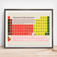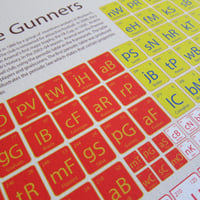 'Elements of the Gunners' is a visual tribute to some of the great characters of Arsenal football club, using the iconic periodic table as the framework. Information on appearances and goals from each completed season is included for each player.