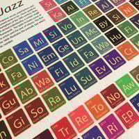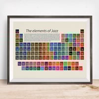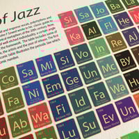 'The elements of Jazz' is a visual tribute to some of the greatest Jazz albums of all-time, using the periodic table as the framework. Each cell includes information on a the album title, the artist and the year the album was released. The artwork includes albums from 1950 onwards.